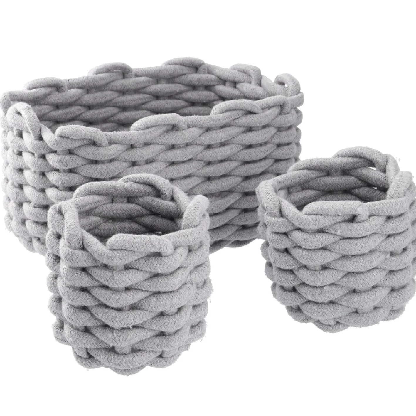 NANU-NANA 3er Set Deko-Korb Strick, Hellgrau