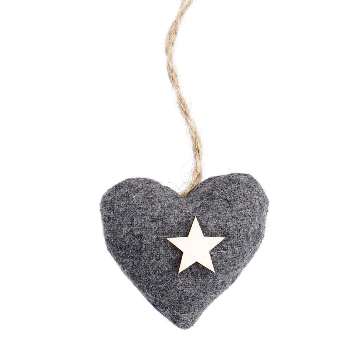 Kleine Details für Weihnachten: Ob als Anhänger am Baum, Geschenk oder Adventskranz – der Herz-Anhänger mit Holzstern in grau ist das kleine i-Tüpfelchen.