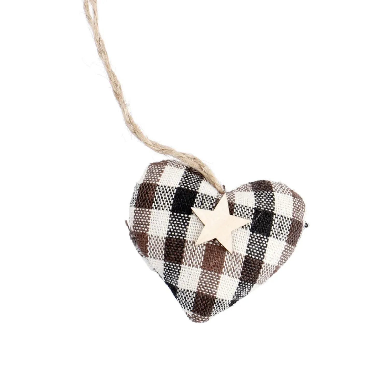 Kleine Details für Weihnachten: Ob als Anhänger am Baum, Geschenk oder Adventskranz – der Herz-Anhänger mit kleinem Holzstern im braun-schwarzen Karomuster ist das kleine i-Tüpfelchen.