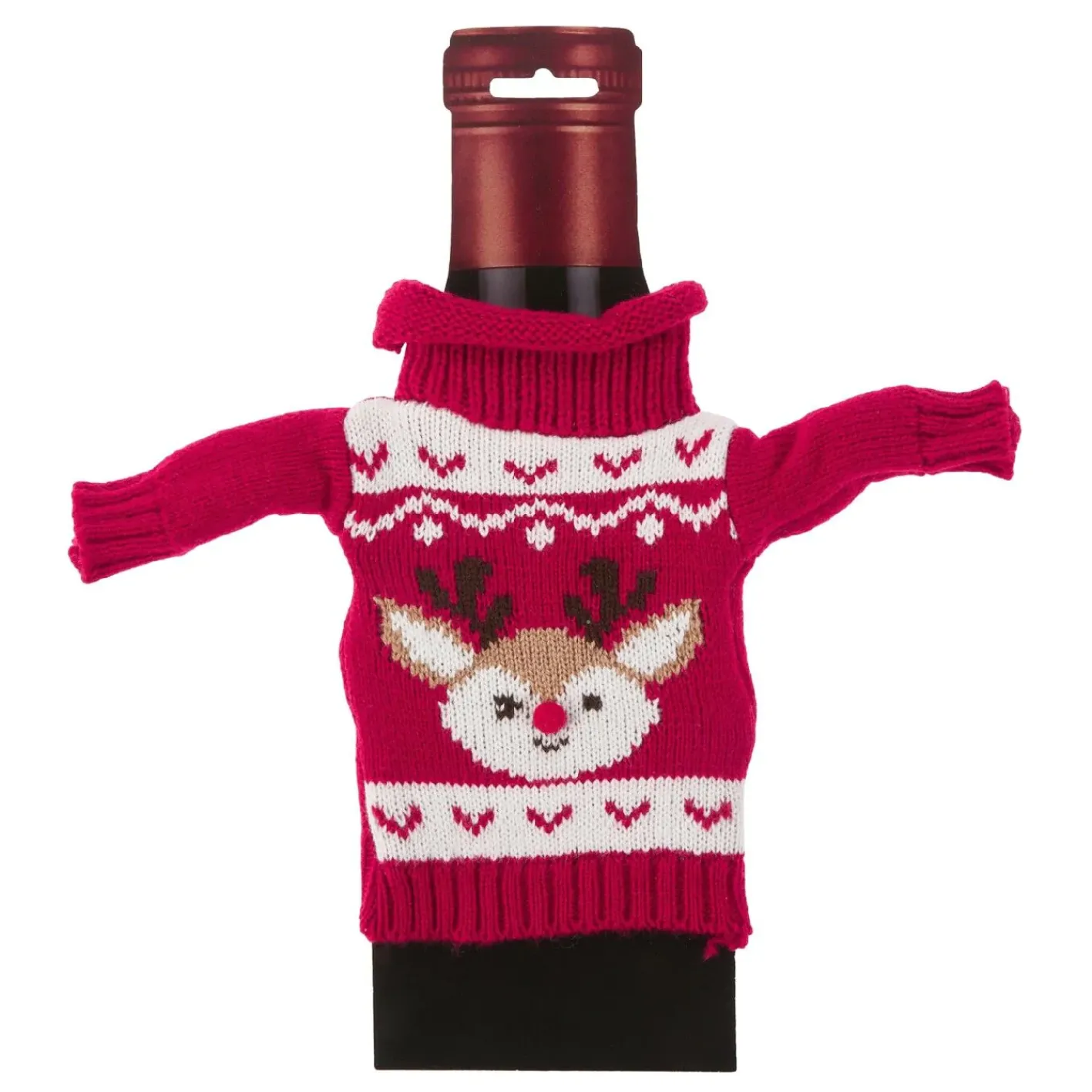 Zaubere jetzt einen tollen Festtags-Look für die Weinflasche. Einfach diesen rot-weißen Strickpullover über die Flasche ziehen, schon ist die Weinflasche weihnachtlich dekoriert.