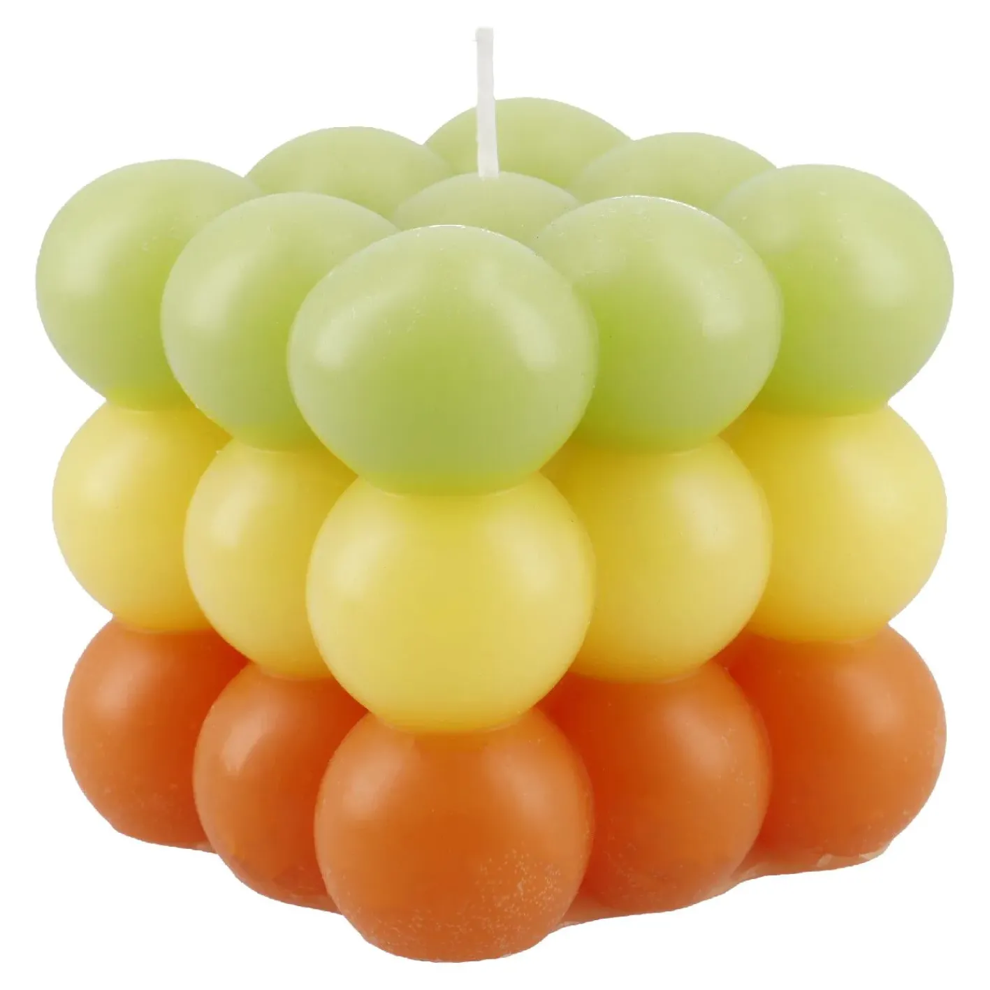 NANU-NANA Kerze Bubbles, Eckig, Grün/gelb/orange, 8 X 8 X 8 Cm