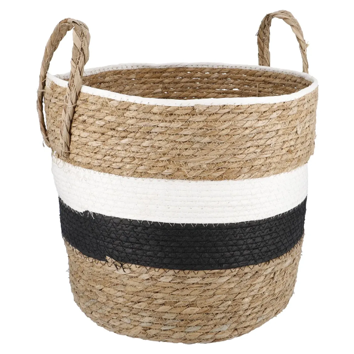 NANU-NANA Korb Wasserhyazinthe, Schwarz/weiß/natur, 34 X 33 Cm