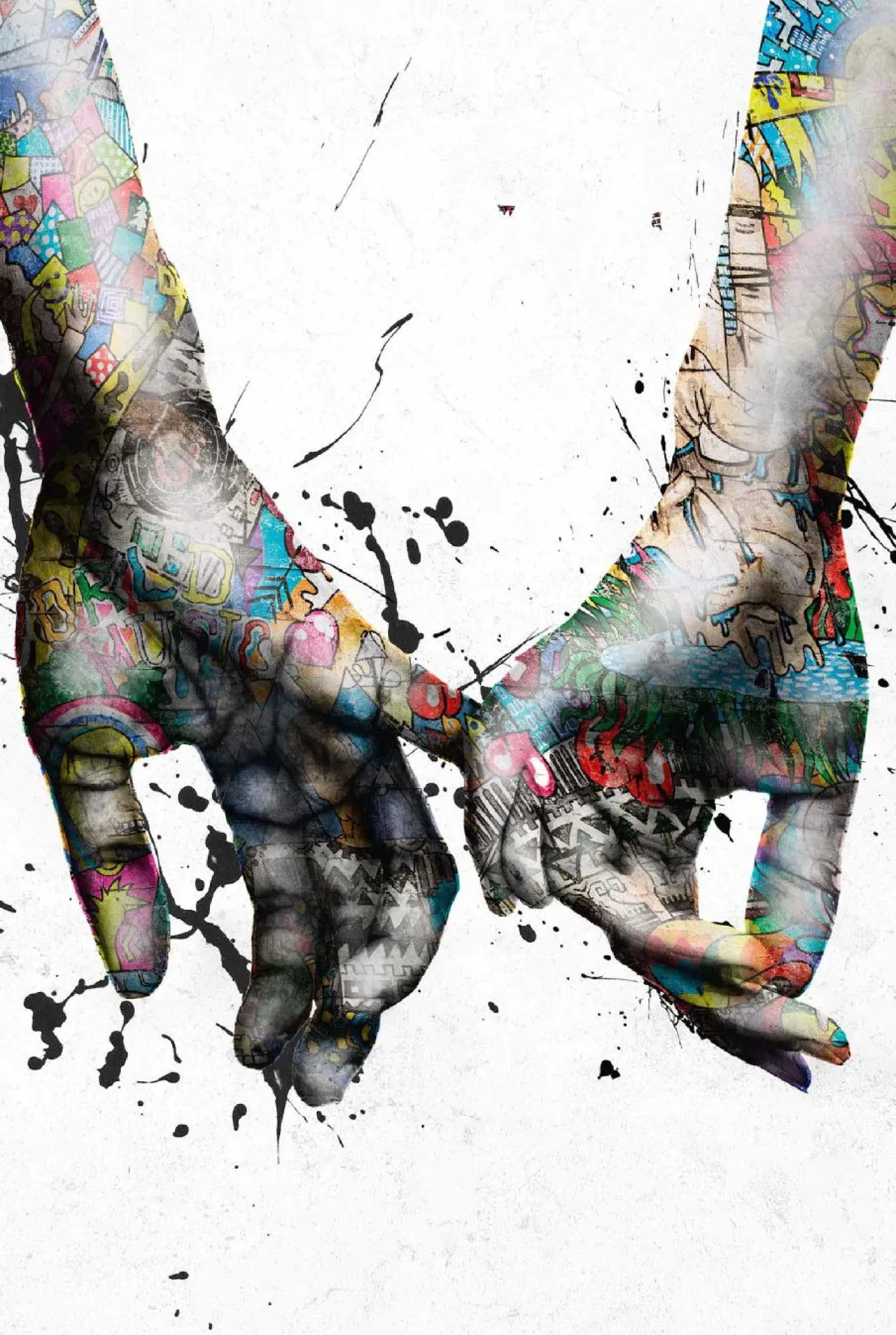Hand in Hand! Modernes Wandbild mit brillianten Farben verleiht deinen Räumen das Gewisse etwas!
