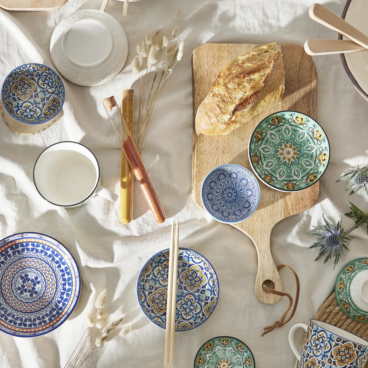 Präsentiere in dieser flachen Porzellanschale Gewürzmischungen, Salze oder besondere Öle. Kombiniere die Schale mit weiteren Schalen anderer Größen oder Muster und erhalten so einen einzigartigen Mix and Max Look auf dem Tisch.Durchmesser: 9 cmFassungsvolumen: 80 ml