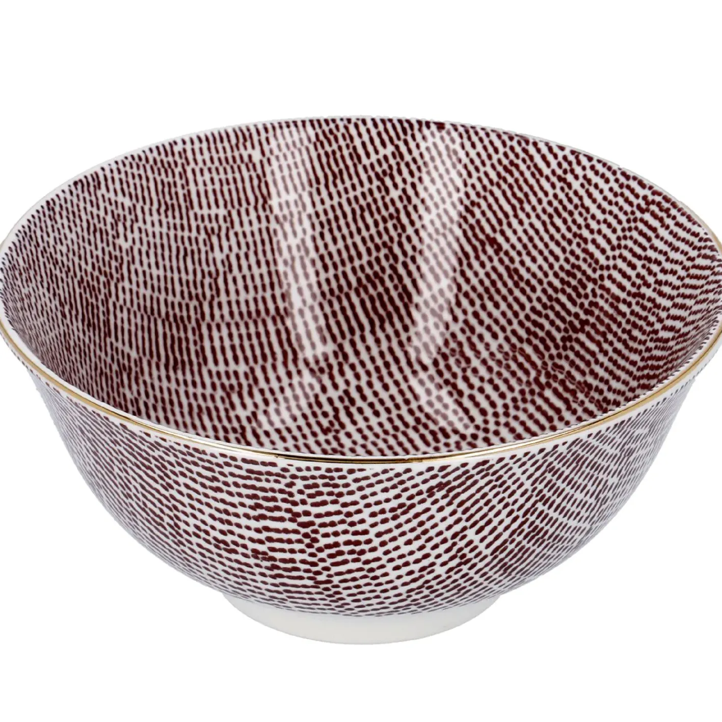 NANU-NANA Schale China, Groß, Bordeaux/weiß, Striche