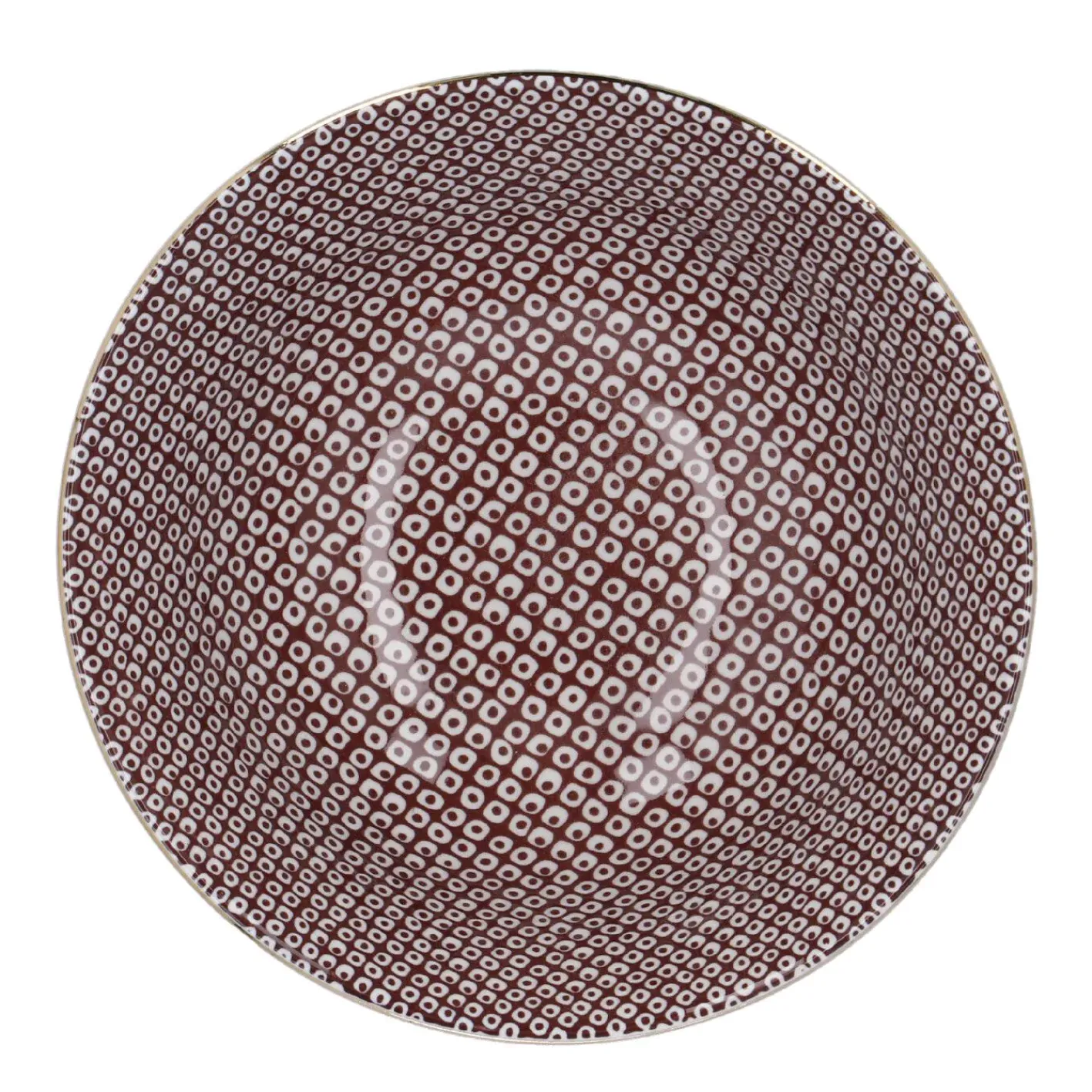 NANU-NANA Schale China, Tief, Bordeaux/weiß, Goldrand, Perlen