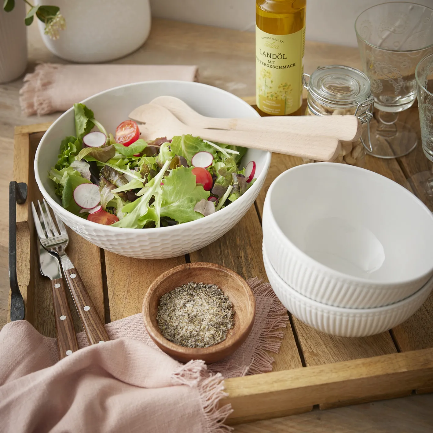 Genieße deine Suppen, Müslis und Bowls in dieser wunderschöne Schale mit Relief an der Außenseite. Durch das schlichte Design kannst du die Schale mit weiteren Geschirrteilen kombinieren.