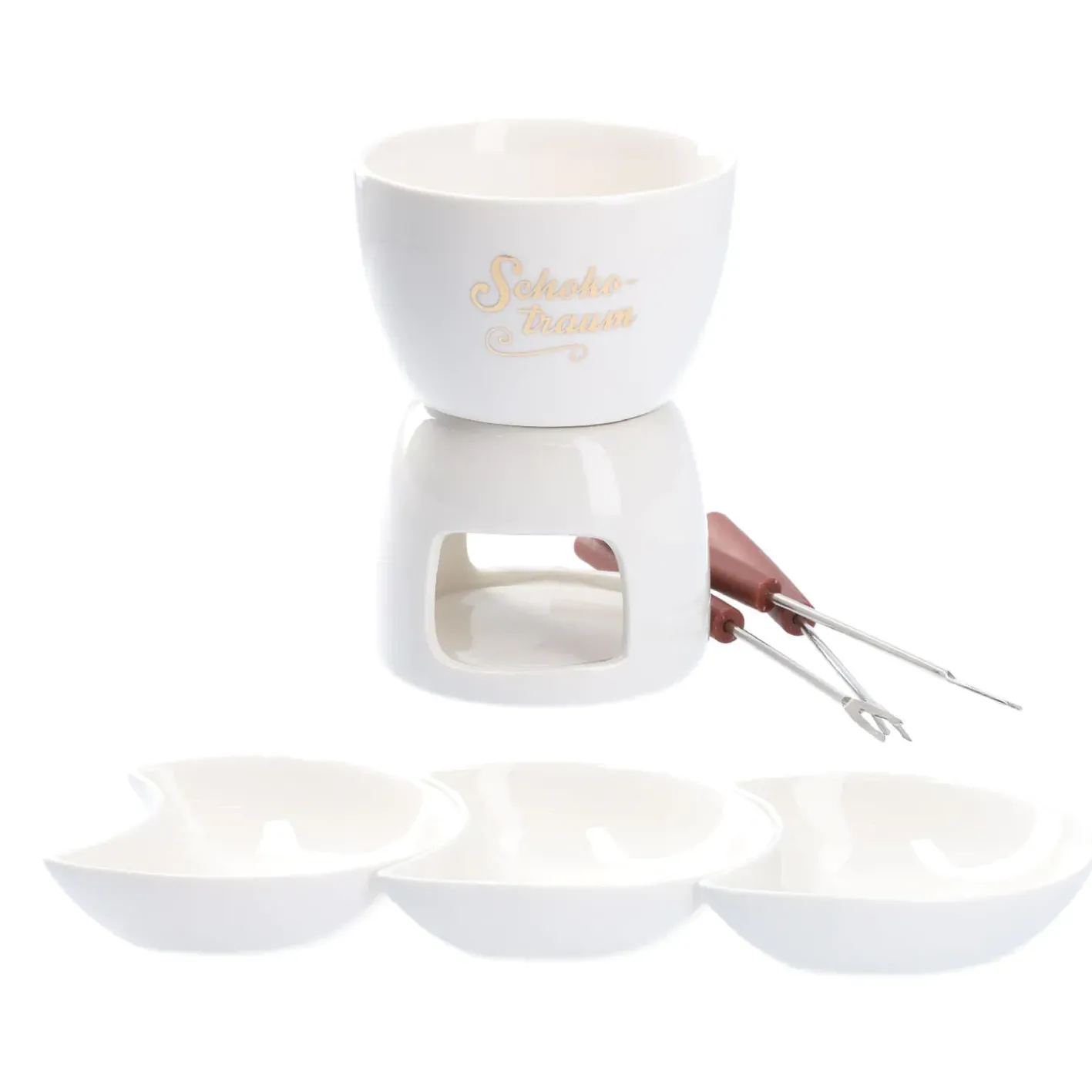 Dieses elegante Schokofondue ist der Schokotraum schelchthin. Mit drei Gabeln wir drei hungrige Naschkatzen satt und für jeden gibt es eine kleine Schale dazu. Die angegebene Maße bezieht sich auf die Verpackung.