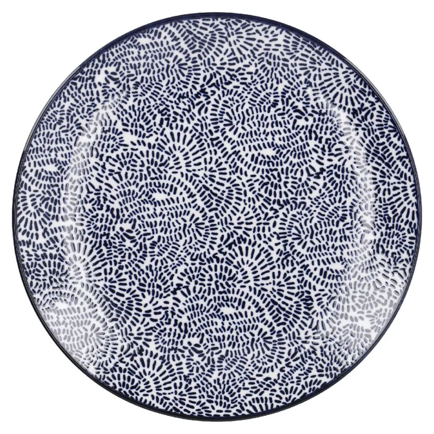 Dieser Porzellanteller aus unserer Serie Anna ist perfekt, um Kuchen, Desserts oder andere Leckereien zu servieren. Das Muster sorgt für Abwechslung auf dem Tisch und lässt weißes Geschirr ganz schön blass aussehen.