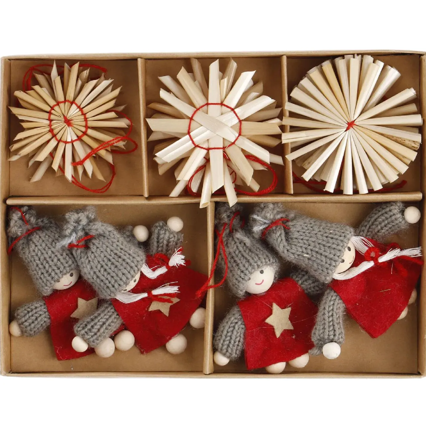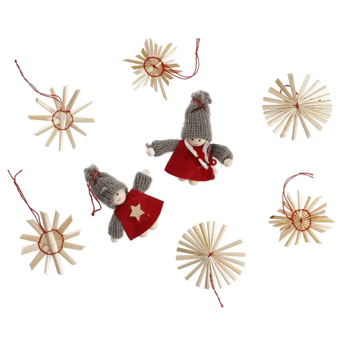 NANU-NANA 16er Set Strohanhänger Mädchen/Sterne, Rot/grau