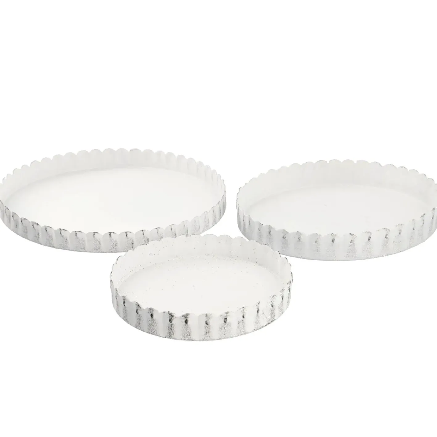 Drei Metall-Schalen im Set. Nutze sie als Dekorationsgrundlage oder Kerzenteller. Durch den erhöhten Rand kann tropfendes Wachs einer Kerze nicht auf den Tisch gelangen.