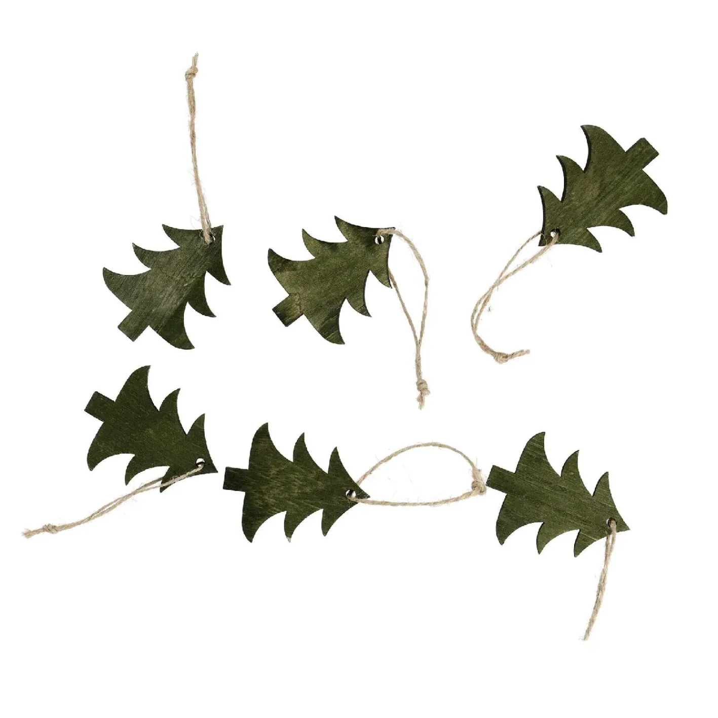 NANU-NANA 6er Set Anhänger Holz, Tanne, Grün
