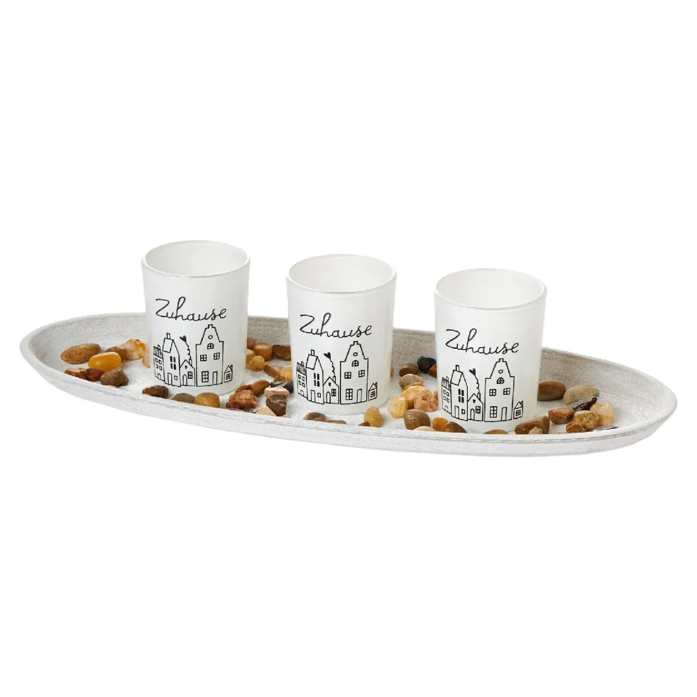NANU-NANA Deko-Tablett Zuhause Mit 3 Windlichtern, Schwarz