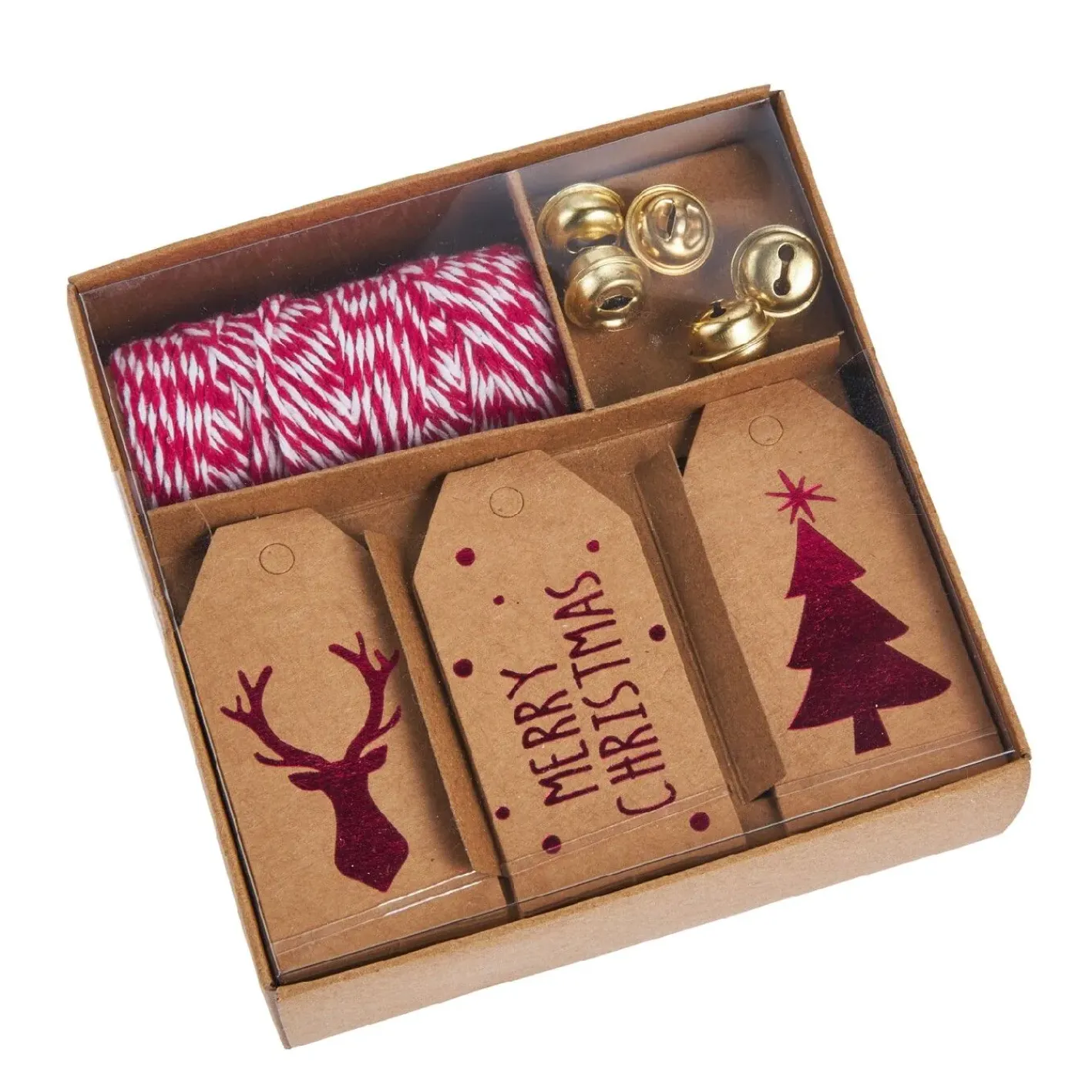 Verpacke, verschönere und vollende deine Weihnachtsgeschenke mit diesem tollen, in rot-weiß-natur gehaltenem Geschenkeset.