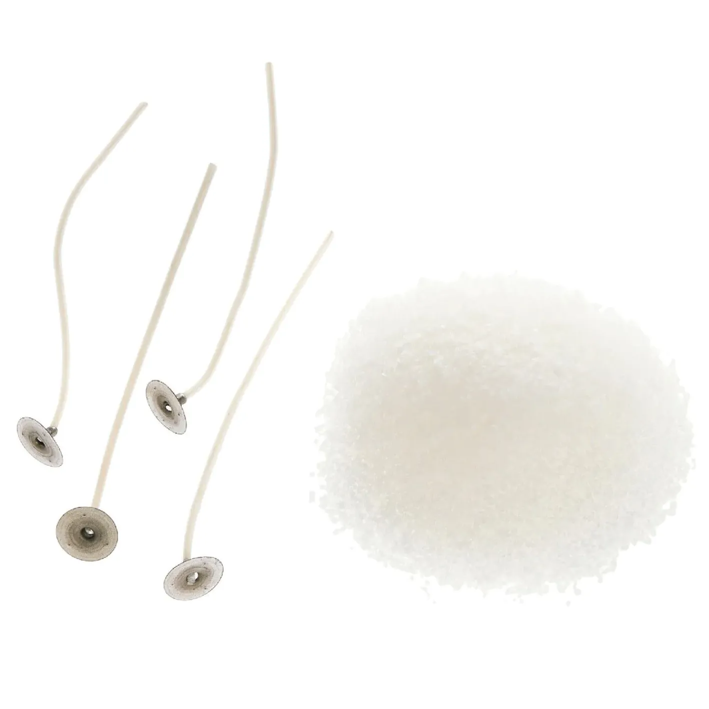 Eingefüllt in einem hitzebeständigem Gefäß, wie z.B. Glas, verwandelt das Wachsgranulat dieses in eine einzigartige Kerze. Vier passende Dochte liegen jeder Packung bei und lassen sich mühelos auf die benötigte Länge zuschneiden.