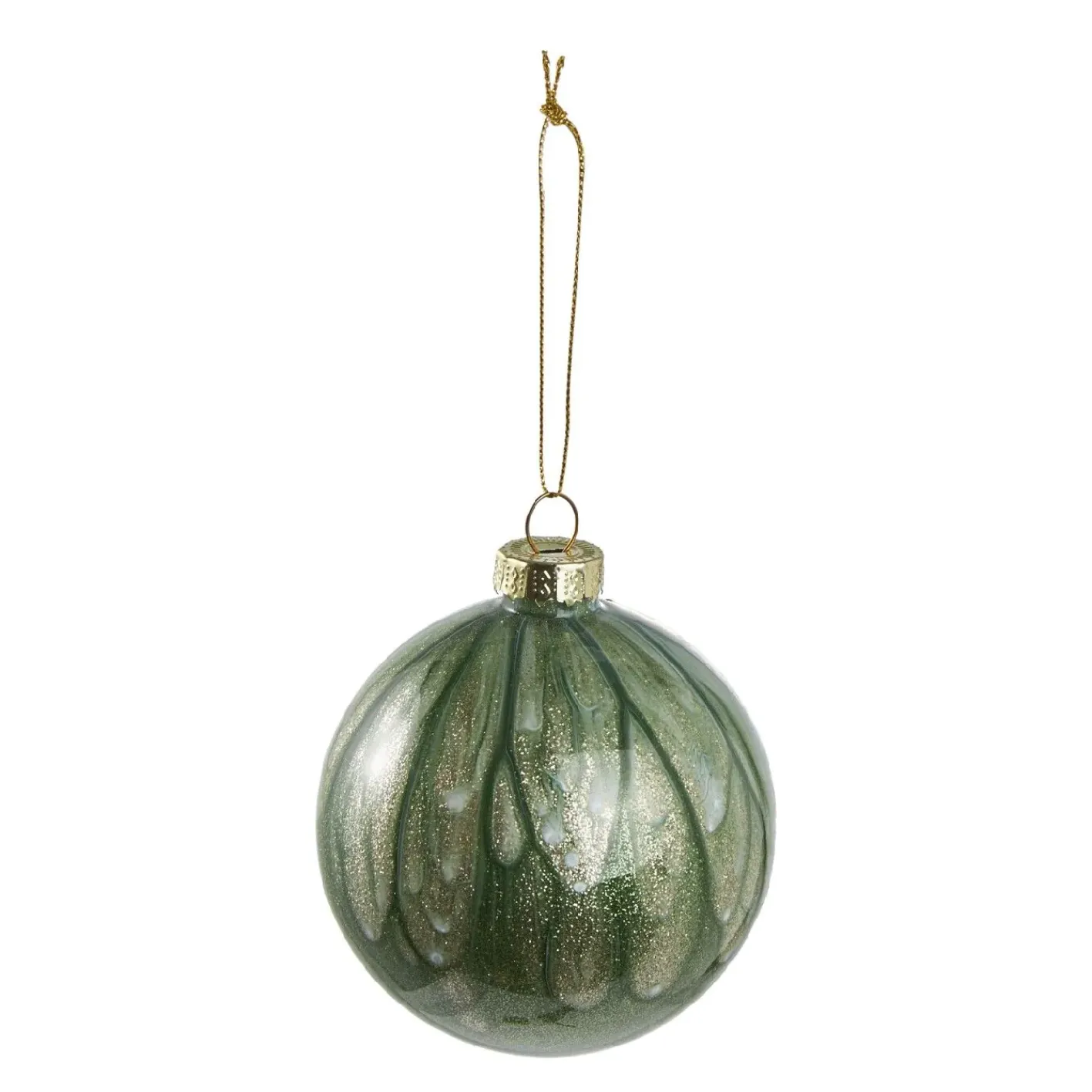 Marmorierte Glaskugel in edlem Grün. Eine erfrischende Dekorationsidee für deinen Tannenbaum.