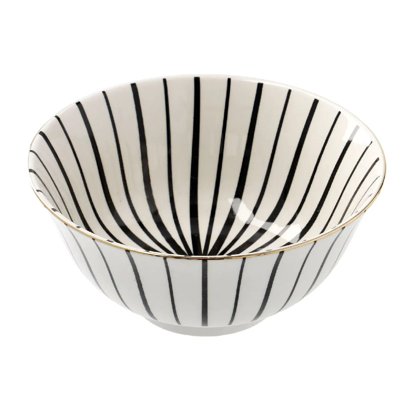 Mit dieser schwarz-weißen Schale aus feinstem Porzellan kannst du Suppen, Bowls oder Müsli stilvoll genießen. Auch deine Gäste werden begeistert sein, wenn du leckere Kleinigkeiten und Snacks in dieser Schale servierst. Durchmesser: 15 cm.Die Größe und das Gewicht beziehen sich auf eine Schale.